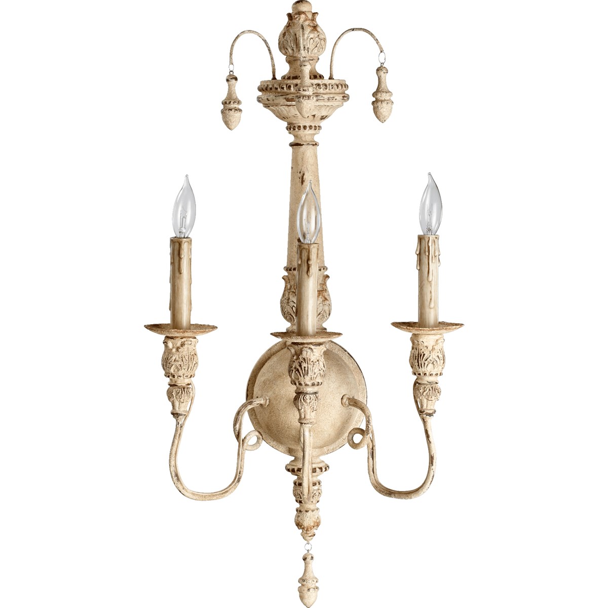 This Salento 26" 3-LT Wall Bracket from Quorum has a finish of Persian White and fits in well with any Transitional style decor.