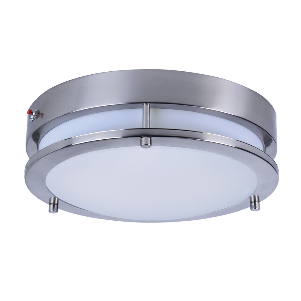 Commercial grade energy efficient lighting featuring linear frames of metal finished in Satin Nickel and etched opal glass over a multiple LED array to update an architecturally classic design.