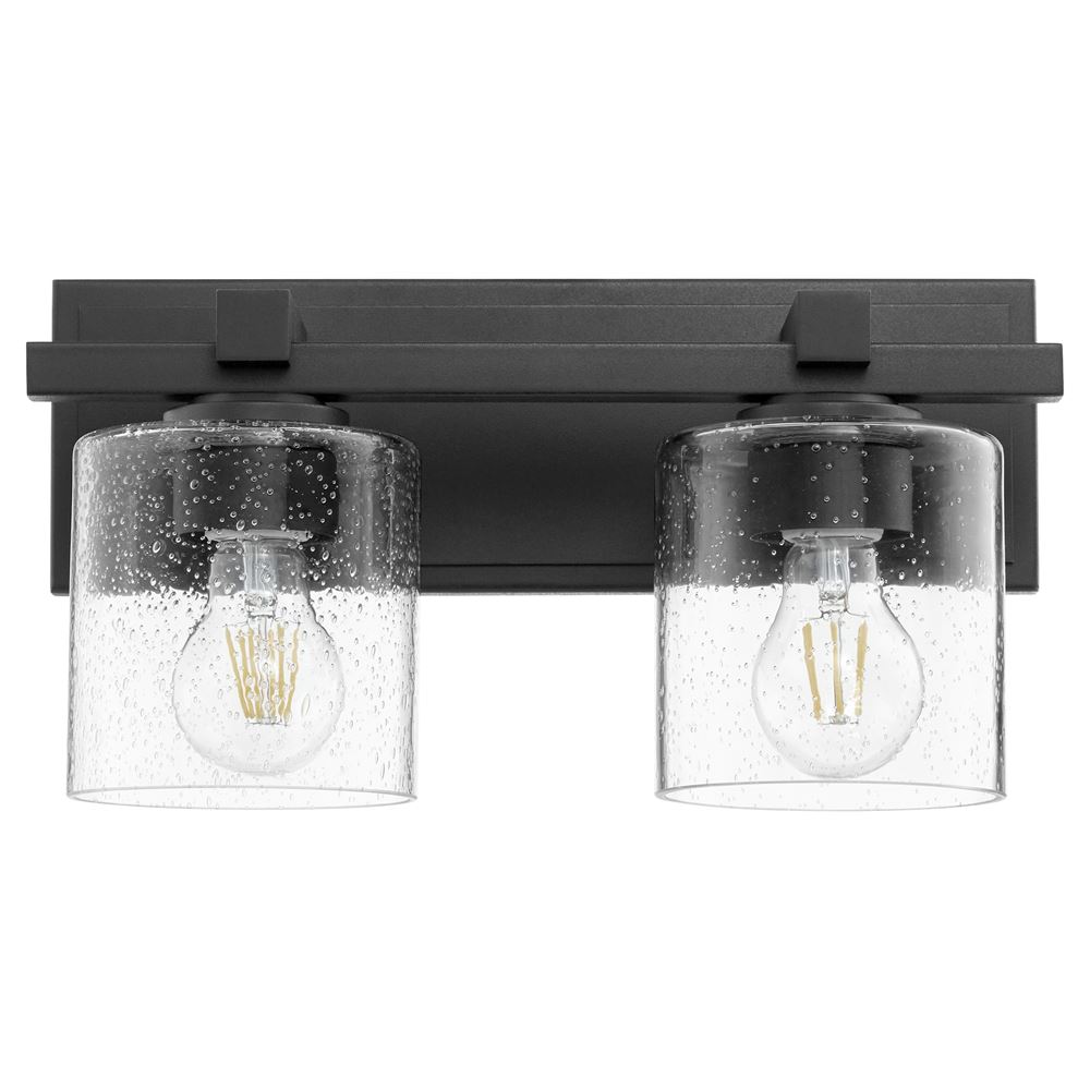 This 2-LT Cylinder Wall Mount from Quorum has a finish of Noir w/Clear/Seeded and fits in well with any Contemporary style decor.