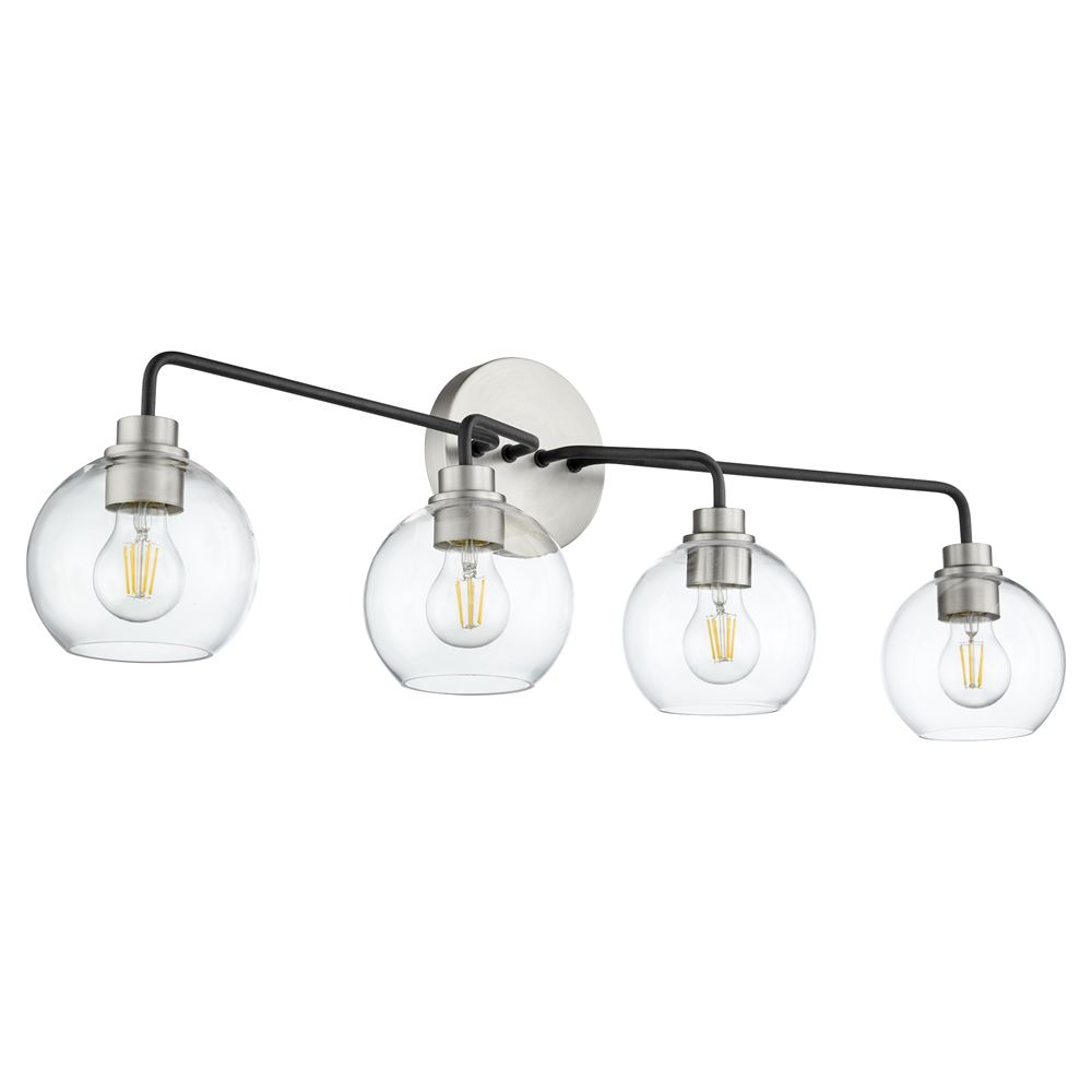 This 4-LT Bath Vanity Light from Quorum has a finish of Noir w/ Satin Nickel and fits in well with any Transitional style decor.