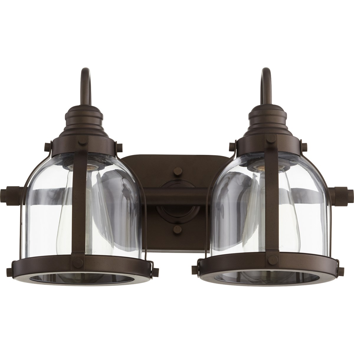 This 2-LT Banded Dome Vanity from Quorum has a finish of Oiled Bronze and fits in well with any Transitional style decor.