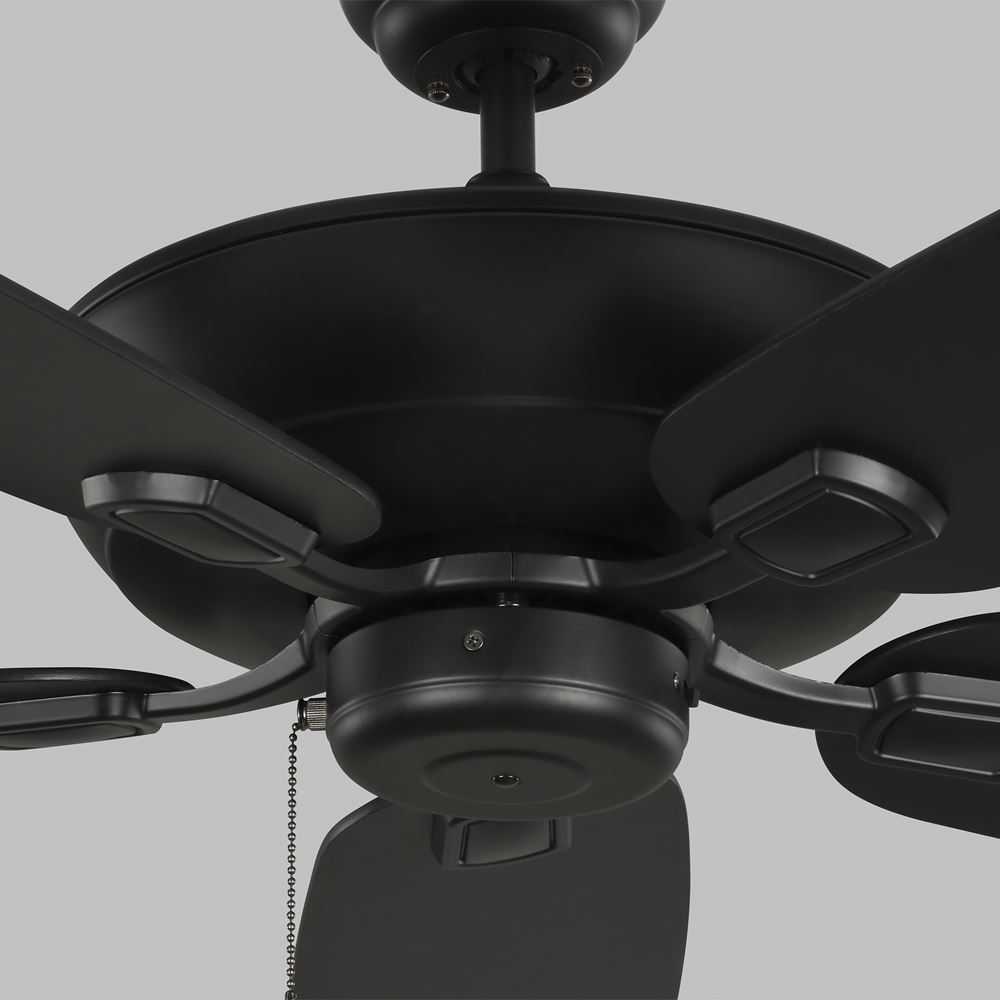 The Monte Carlo 52" Colony Max - Midnight Black in midnight black features a 153.0 X 18.0 3 speed motor with a Twelve degree blade pitch. The tailored silhouette and multiple finish and mounting options of the 52" Colony Max ceiling fan by Monte Carlo make it a universal choice for any decor and room size. The Colony Max is rated for damp locations and has an optional remote control.
