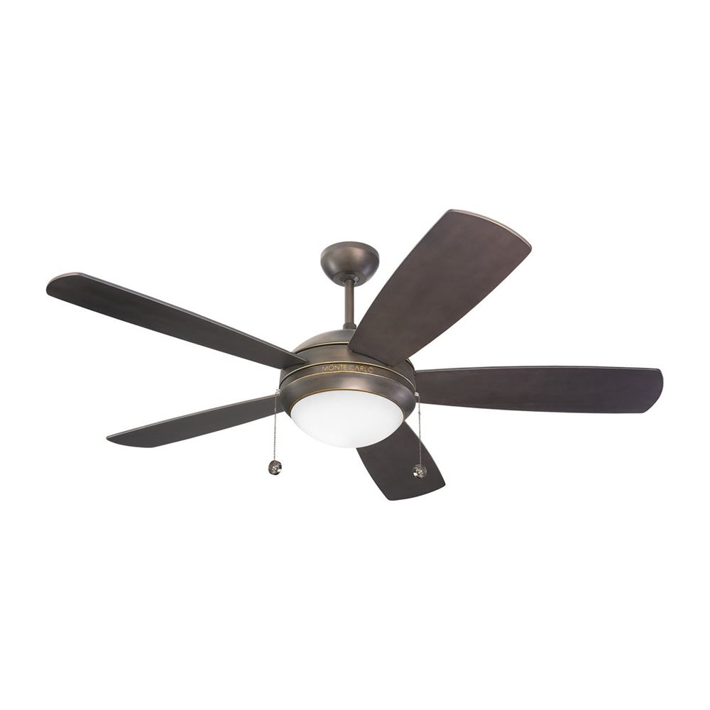 With a minimalist, contemporary design and six color/finish options, the Discus ceiling fan by Monte Carlo complements a wide variety of room styles. As part of Monte Carlo's modern collection, Discus features a dual mount canopy and an integrated halogen downlight with a matte opal glass shade for functionality with flair. A pull chain controls this 3-speed fan, however a handheld or wall mount remote control is compatible and sold separately.