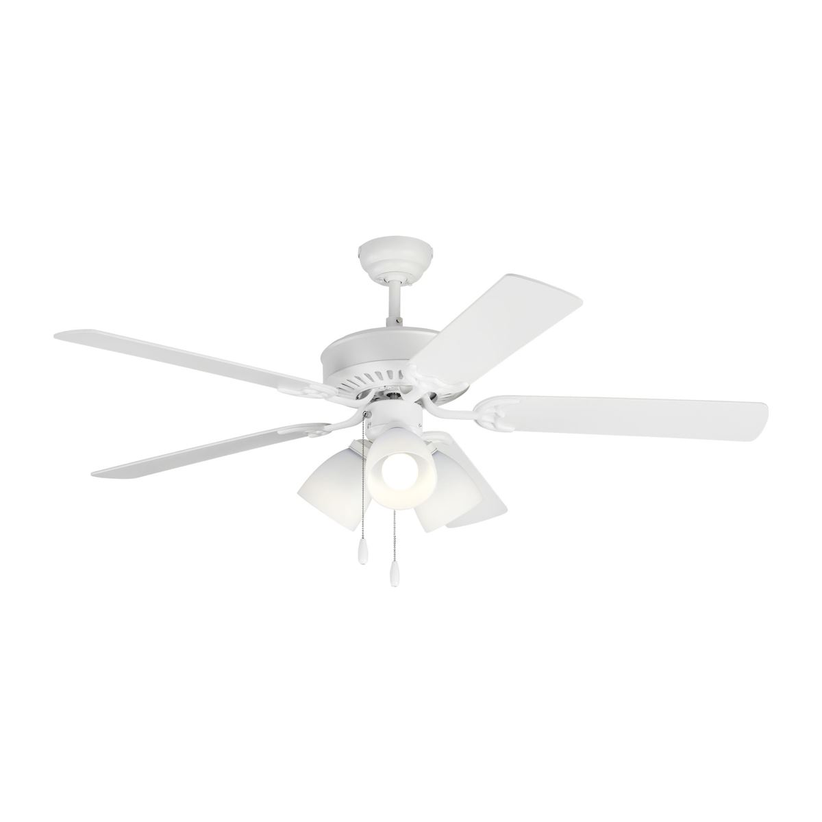 The transitionally styled Haven 52 LED 3 ceiling fan by Monte Carlo has a 52" blade sweep, is available in six finishes and includes a three light fitter furnished with Matte White glass shades and LED lamps. Designed with a three-speed, pull chain motor with manual reverse switch to optimize performance year-round. Haven is compatible with a choice of Monte Carlo remote controls (sold separately).