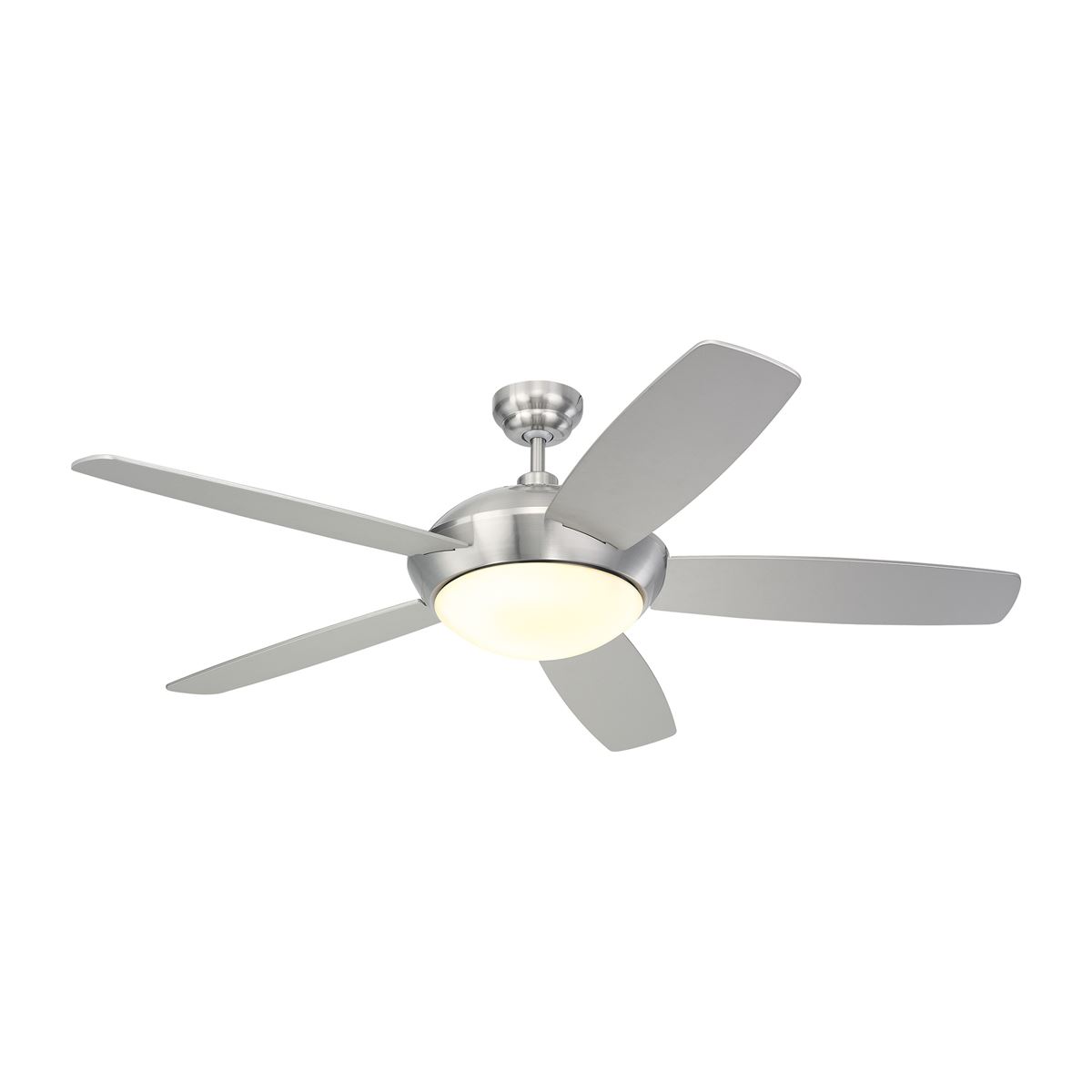 The Sleek ceiling fan by Monte Carlo has a 52” blade sweep that makes a bold statement with its clean, contemporary lines. It includes an integrated downlight encased in either Graduated Amber glass or Matte Opal glass. The housings and blades are offered in our Roman Bronze, Brushed Steel or White finishes in order to customize the look for any décor. A two-in-one remote (combo hand-held and wall mount) is included which offers reverse and downlight control.