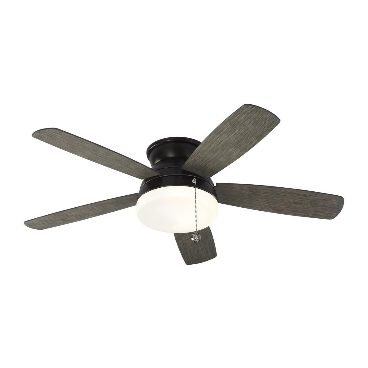 The Traverse by Monte Carlo is a 52", five-blade, semi-flush ceiling fan with an integrated, downlight all wrapped-up in the clean lines of a modern design available in three updated finishes. The integrated downlight has an equally contemporary profile with a smooth shade made of either Graduated Amber glass or Matt Opal glass and comes with one 75W halogen bulb. For a more streamlined look, a finishing cap is included if it’s preferred to install the fan without using the integrated light.