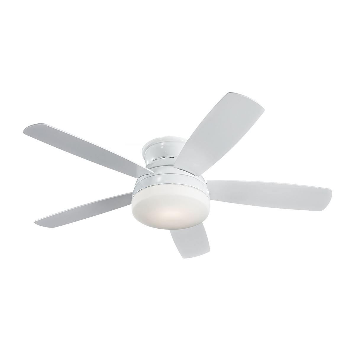 The Traverse by Monte Carlo is a 52", five-blade, semi-flush ceiling fan with an integrated, downlight all wrapped-up in the clean lines of a modern design available in three updated finishes. The integrated downlight has an equally contemporary profile with a smooth shade made of either Graduated Amber glass or Matt Opal glass and comes with one 75W halogen bulb. For a more streamlined look, a finishing cap is included if it’s preferred to install the fan without using the integrated light.