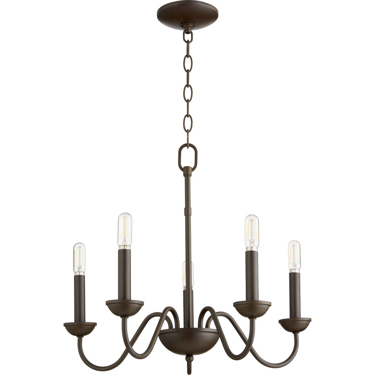 This 5-LT Candle Chandelier from Quorum has a finish of Oiled Bronze and fits in well with any Quorum Home Collection style decor.