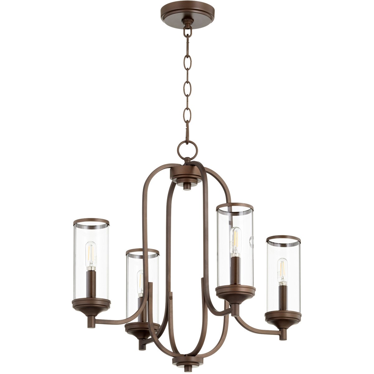 This Collins 4-LT Chandelier from Quorum has a finish of Oiled Bronze and fits in well with any Transitional style decor.