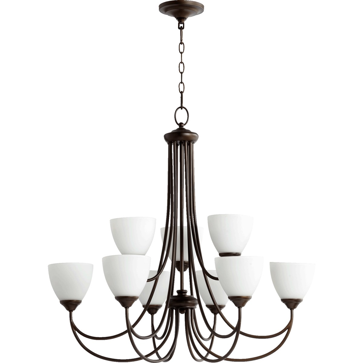 This Brooks 9-LT Chandelier from Quorum has a finish of Oiled Bronze and fits in well with any Quorum Home Collection style decor.