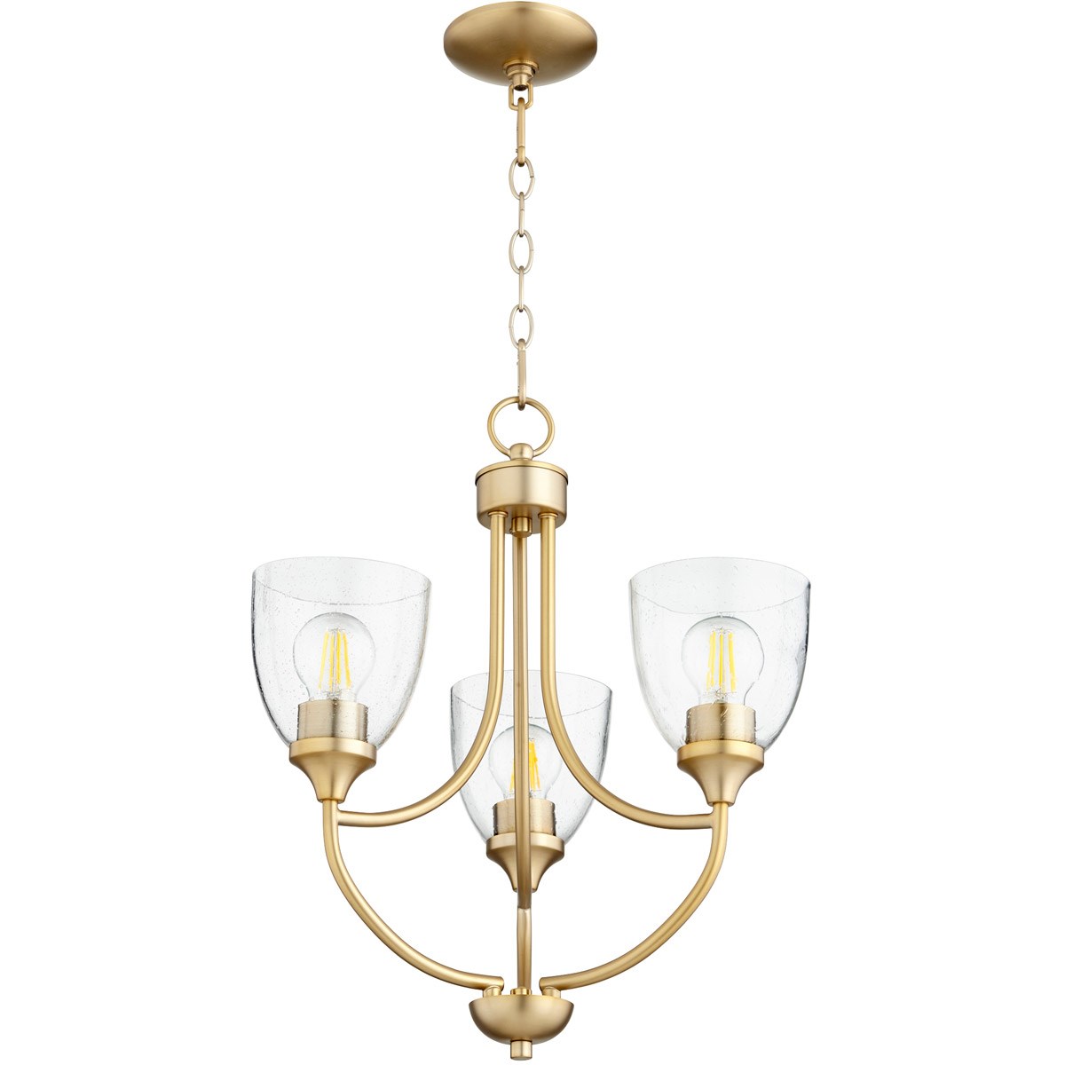This Enclave Chandelier from Quorum has a finish of Aged Brass W/ Clear/Seeded and fits in well with any Quorum Home Collection style decor.