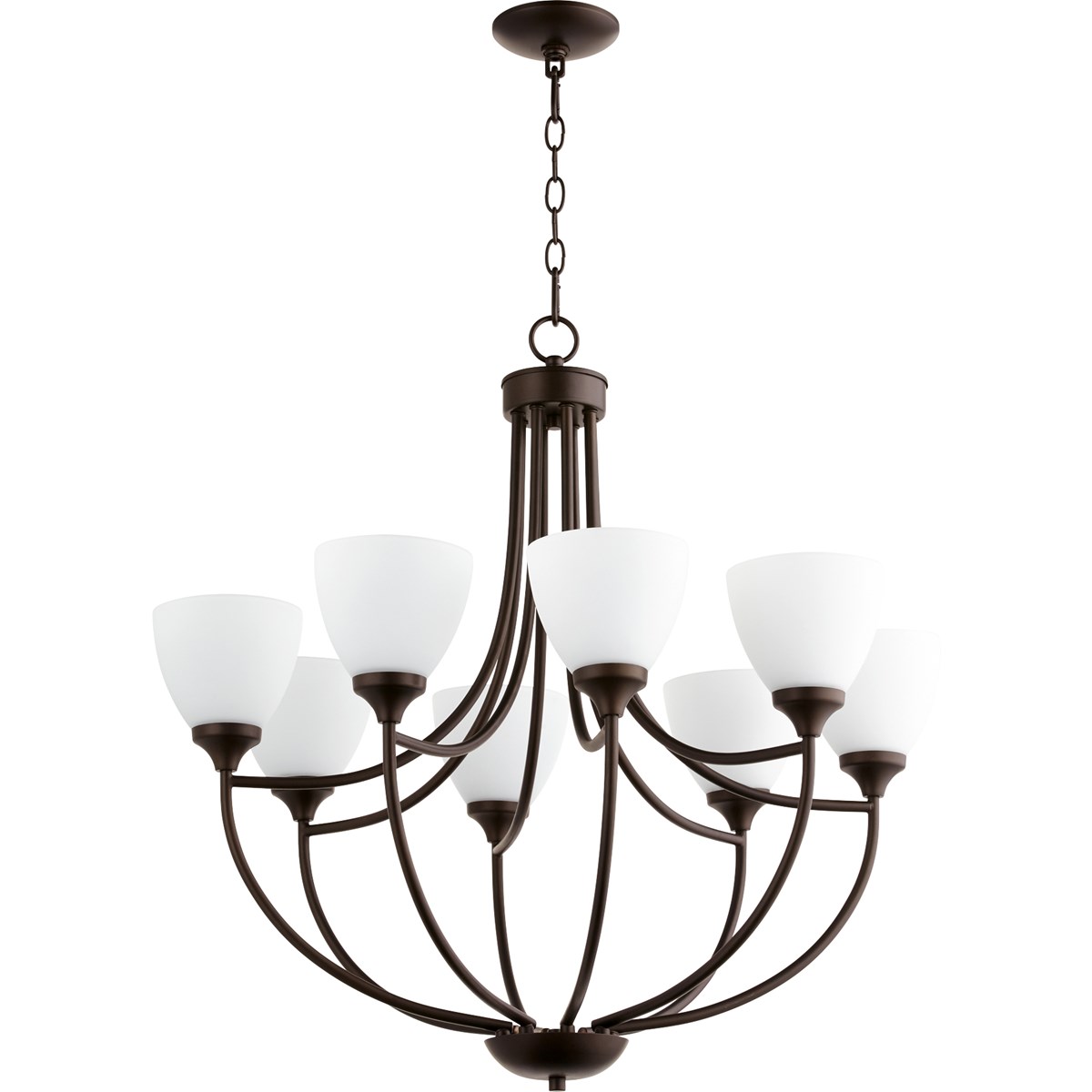 This Enclave 8-LT Chandelier from Quorum has a finish of Oiled Bronze and fits in well with any Quorum Home Collection style decor.