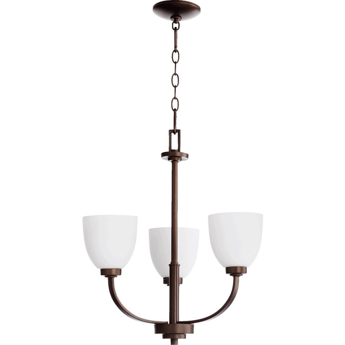This Reyes 3-LT Chandelier from Quorum has a finish of Oiled Bronze and fits in well with any Quorum Home Collection style decor.