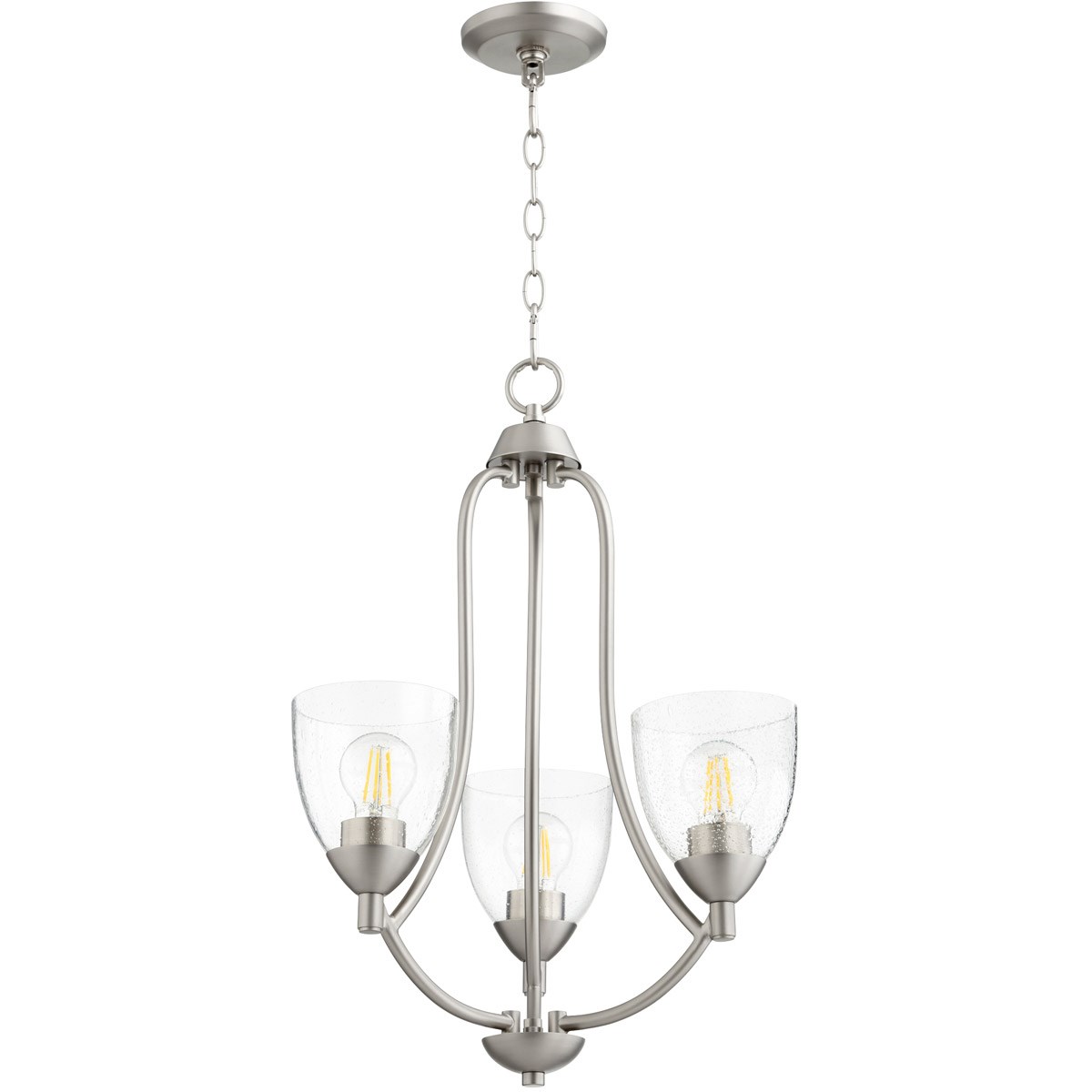 This Barkley Chandelier from Quorum has a finish of Satin Nickel W/ Clear/Seeded and fits in well with any Quorum Home Collection style decor.