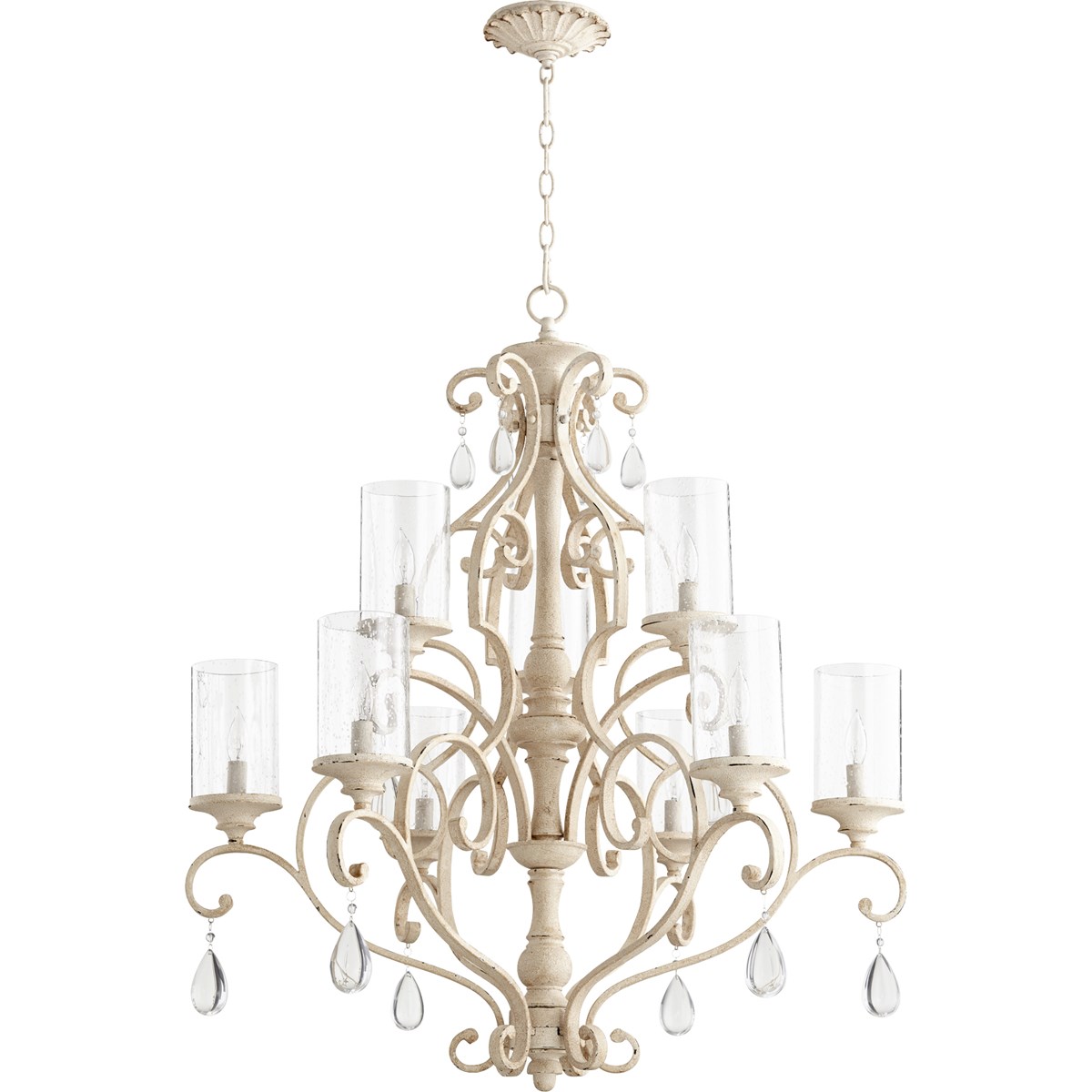 This San Miguel 9-LT Chandelier from Quorum has a finish of Persian White and fits in well with any Transitional style decor.
