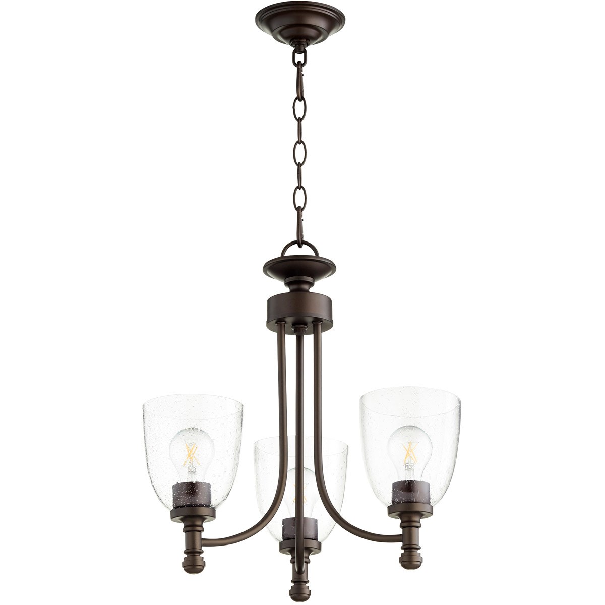 This Rossington Chd from Quorum has a finish of Oiled Bronze W/ Clear/Seeded and fits in well with any Quorum Home Collection style decor.