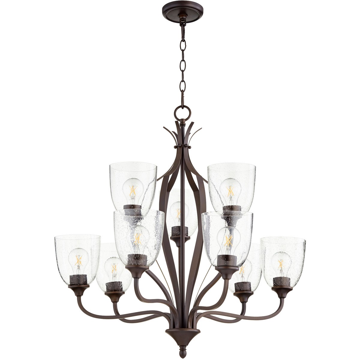 This Jardin Chandelier from Quorum has a finish of Oiled Bronze W/ Clear/Seeded and fits in well with any Quorum Home Collection style decor.