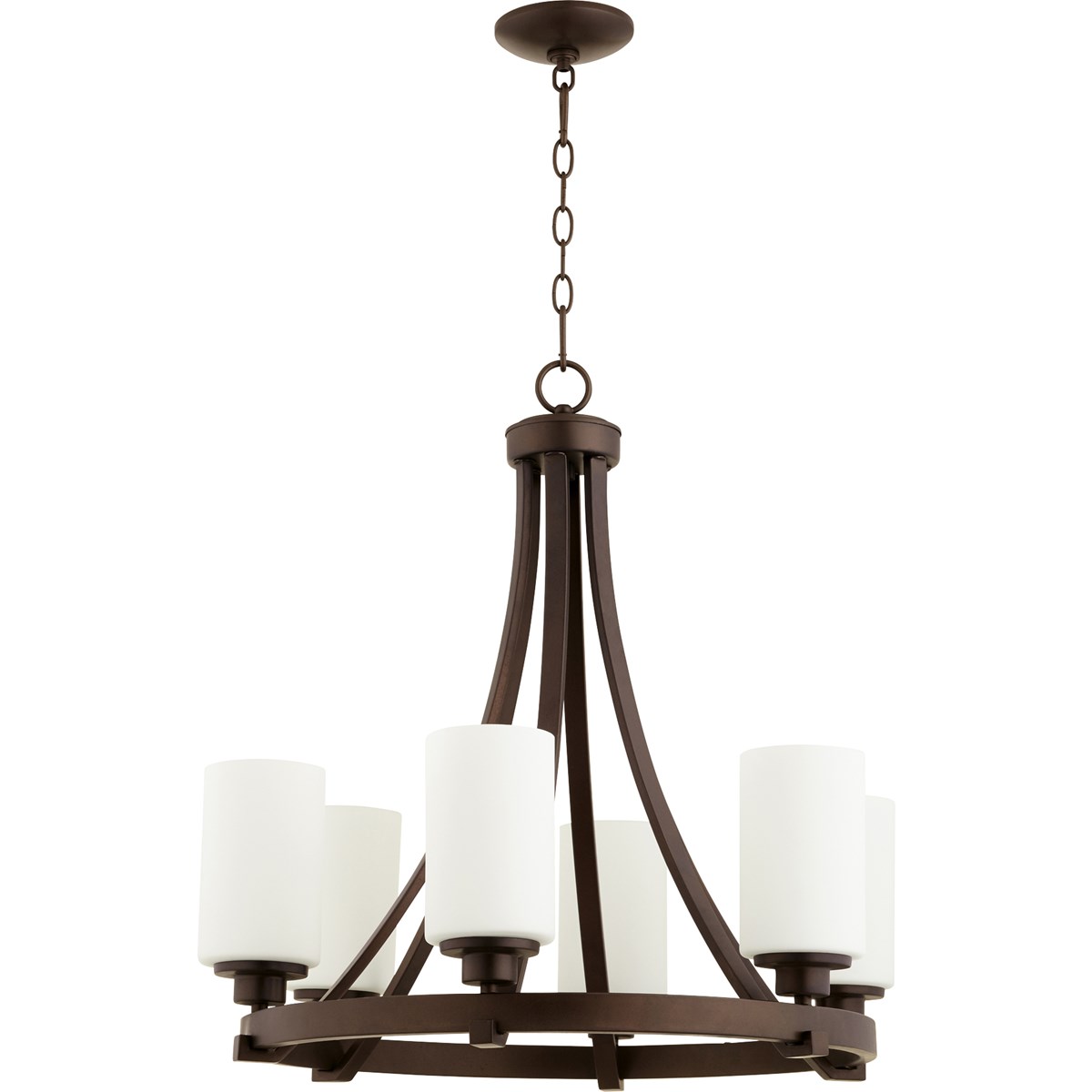 This Lancaster 6-LT Chandelier from Quorum has a finish of Oiled Bronze and fits in well with any Transitional style decor.