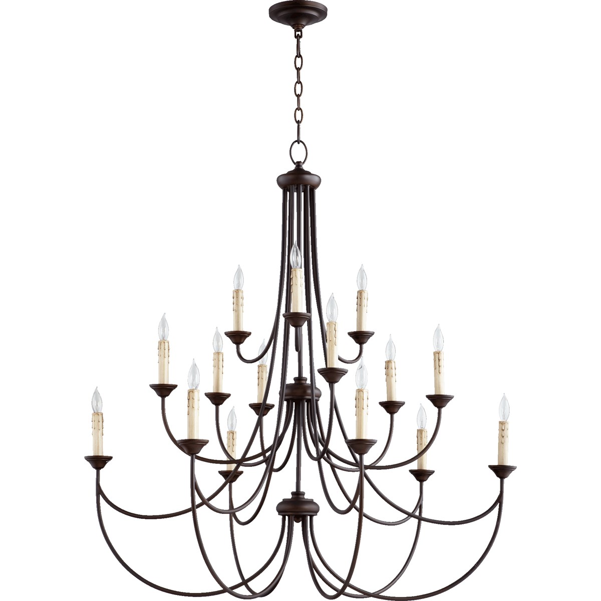 This Brooks 15-LT Candle Chandelier from Quorum has a finish of Oiled Bronze and fits in well with any Quorum Home Collection style decor.
