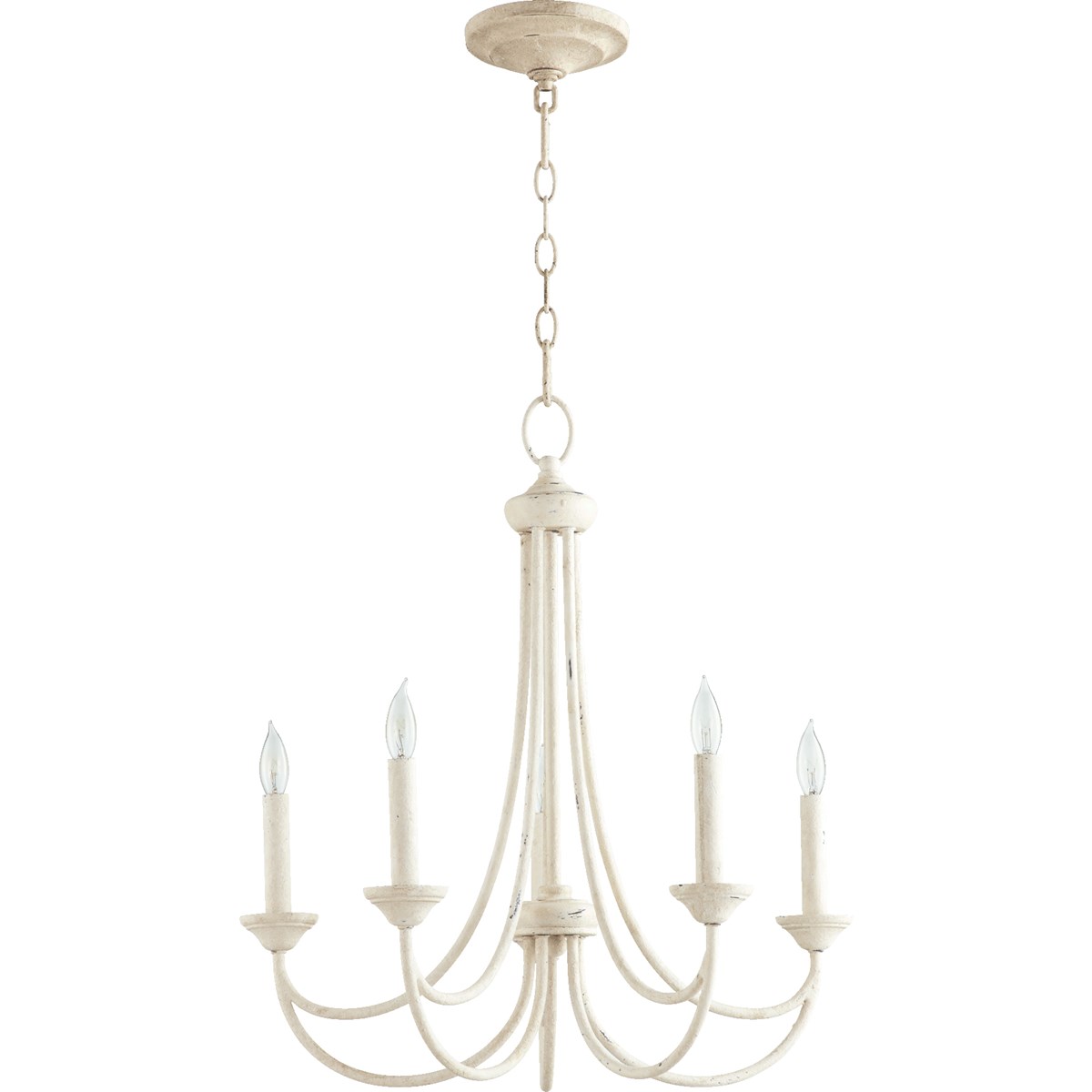 This Brooks 5-LT Candle Chandelier from Quorum has a finish of Persian White and fits in well with any Quorum Home Collection style decor.