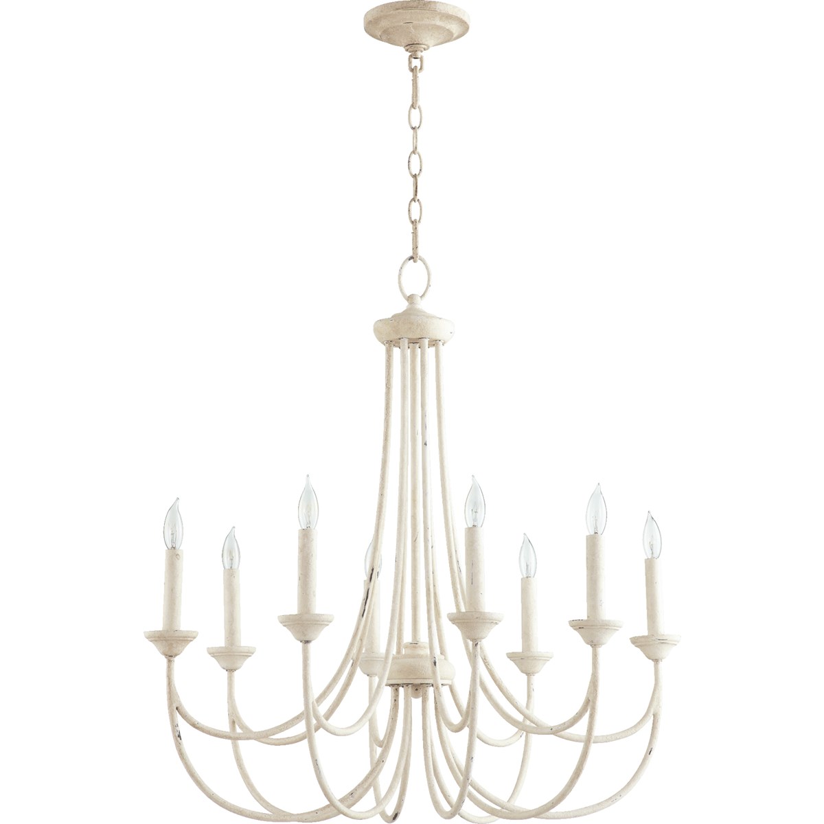 This Brooks 8-LT Candle Chandelier from Quorum has a finish of Persian White and fits in well with any Quorum Home Collection style decor.