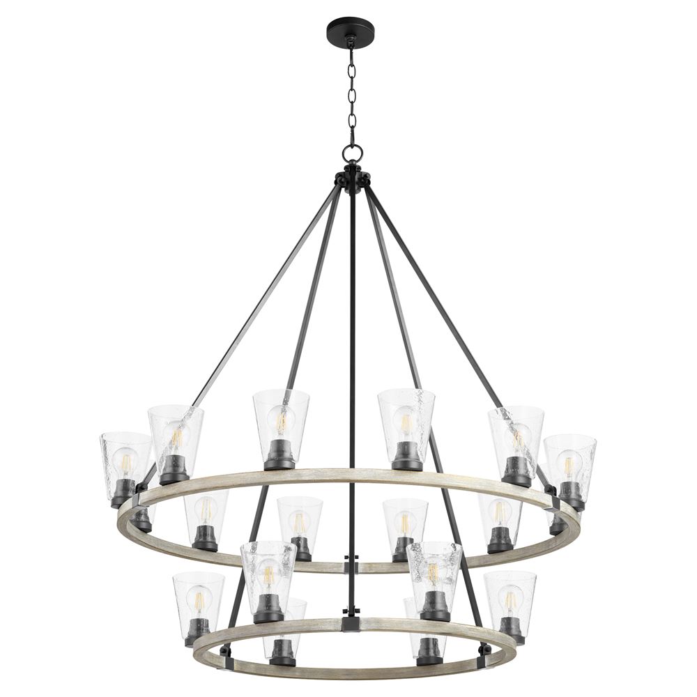 This 18-LT Chandelier from Quorum has a finish of Noir w/Weathered Oak Finish and fits in well with any Transitional style decor.