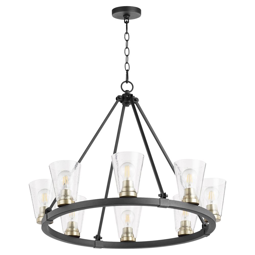 This 8-LT Chandelier from Quorum has a finish of Noir w/Aged Brass and fits in well with any Transitional style decor.