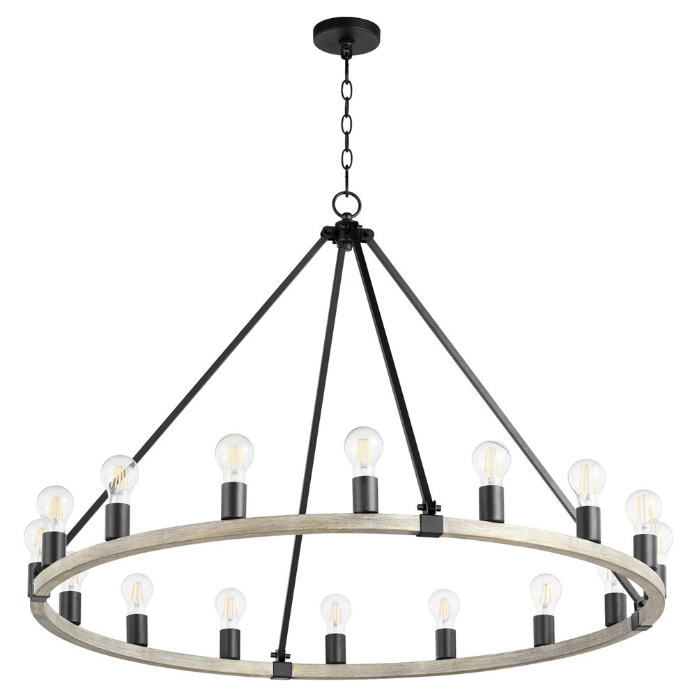 This 16-LT Chandelier from Quorum has a finish of Noir w/Weathered Oak Finish and fits in well with any Transitional style decor.