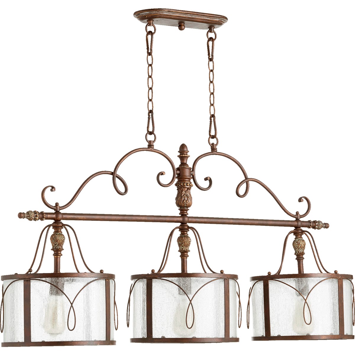 This Salento 3-LT Island Light from Quorum has a finish of Vintage Copper and fits in well with any Transitional style decor.
