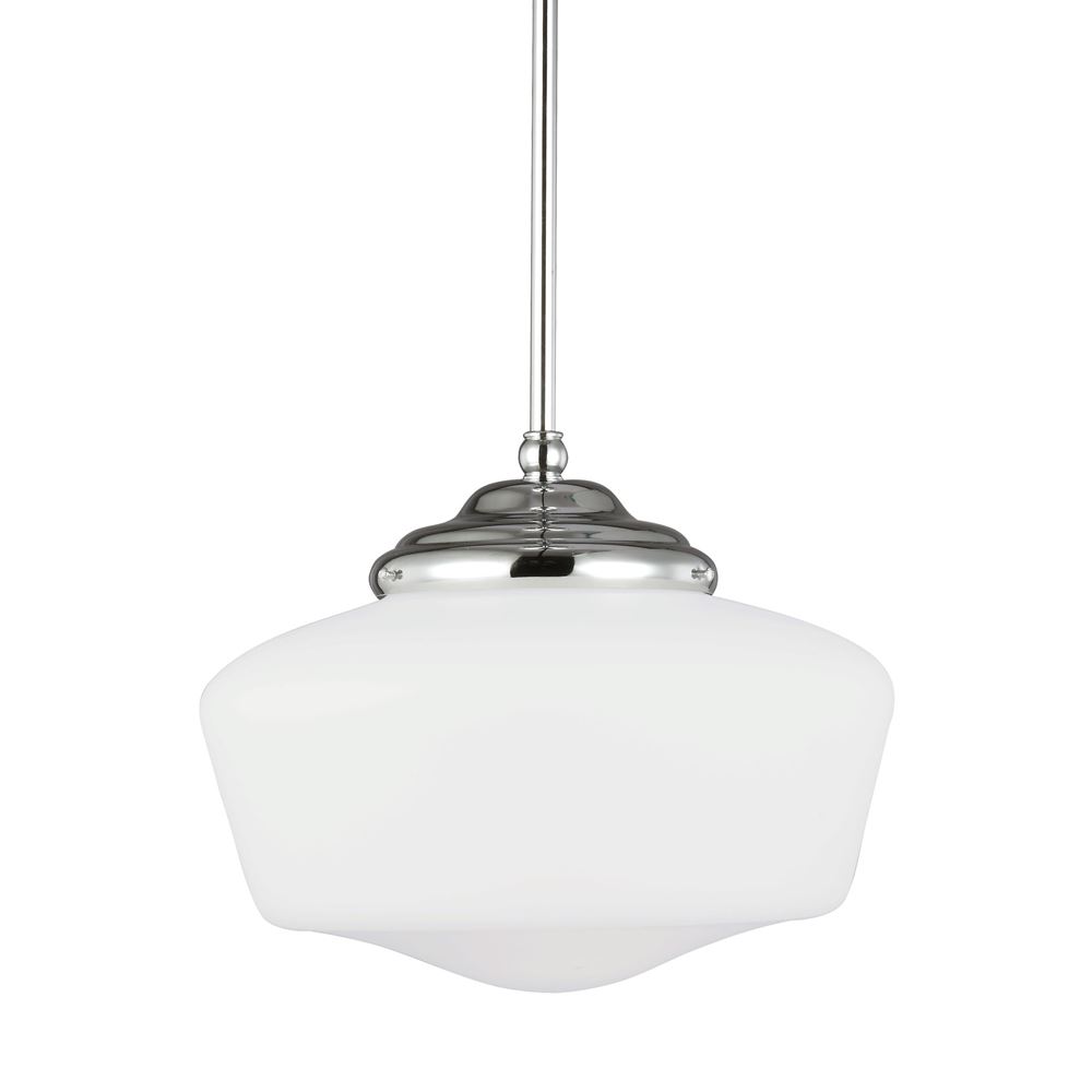 The classic schoolhouse light fixture has been an American icon for almost 90 years. The Academy collection from Sea Gull Lighting is today’s interpretation of these utilitarian lights which have enjoyed resurgence in popularity given their clean, versatile design. Today, top designers regularly select this ubiquitous look for applications in almost every room of the house. Available in Chrome, Brushed Nickel and Heirloom Bronze finishes.