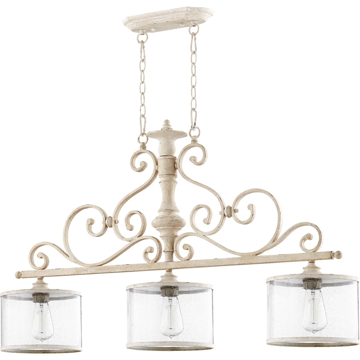 This San Miguel 3-LT Island Light from Quorum has a finish of Persian White and fits in well with any Transitional style decor.