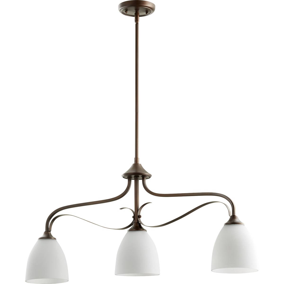 This Jardin 3-LT Island Light from Quorum has a finish of Oiled Bronze and fits in well with any Quorum Home Collection style decor.