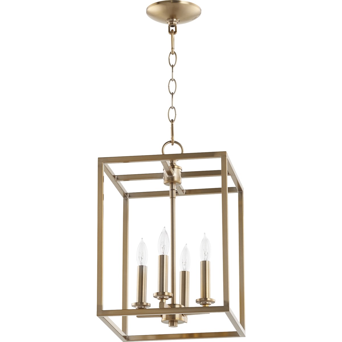 This 4-LT Large Cuboid Entry Light from Quorum has a finish of Aged Brass and fits in well with any Quorum Home Collection style decor.