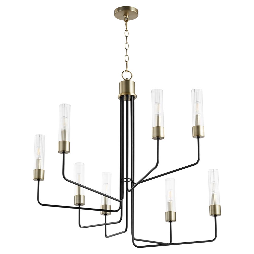 This 8-LT Chandelier from Quorum has a finish of Noir w/Aged Brass and fits in well with any Transitional style decor.