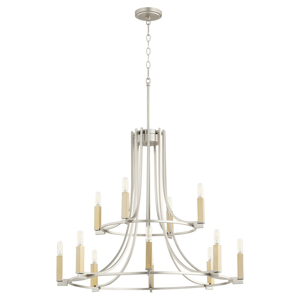 This 12-LT Chandelier from Quorum has a finish of Satin Nickel and fits in well with any Contemporary style decor.