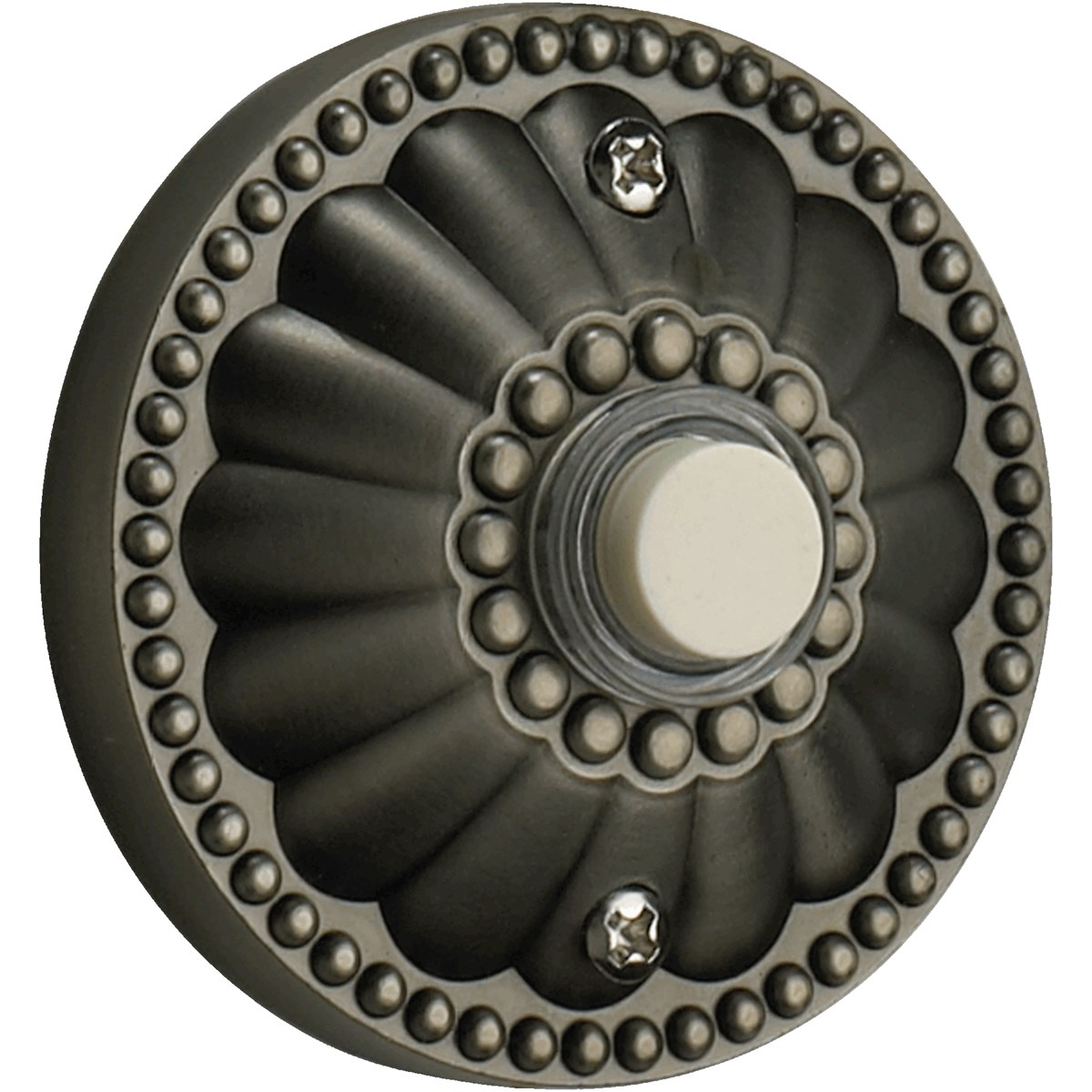 This Elegant Round Door Chime Button from Quorum has a finish of Antique Silver and fits in well with any Transitional style decor.