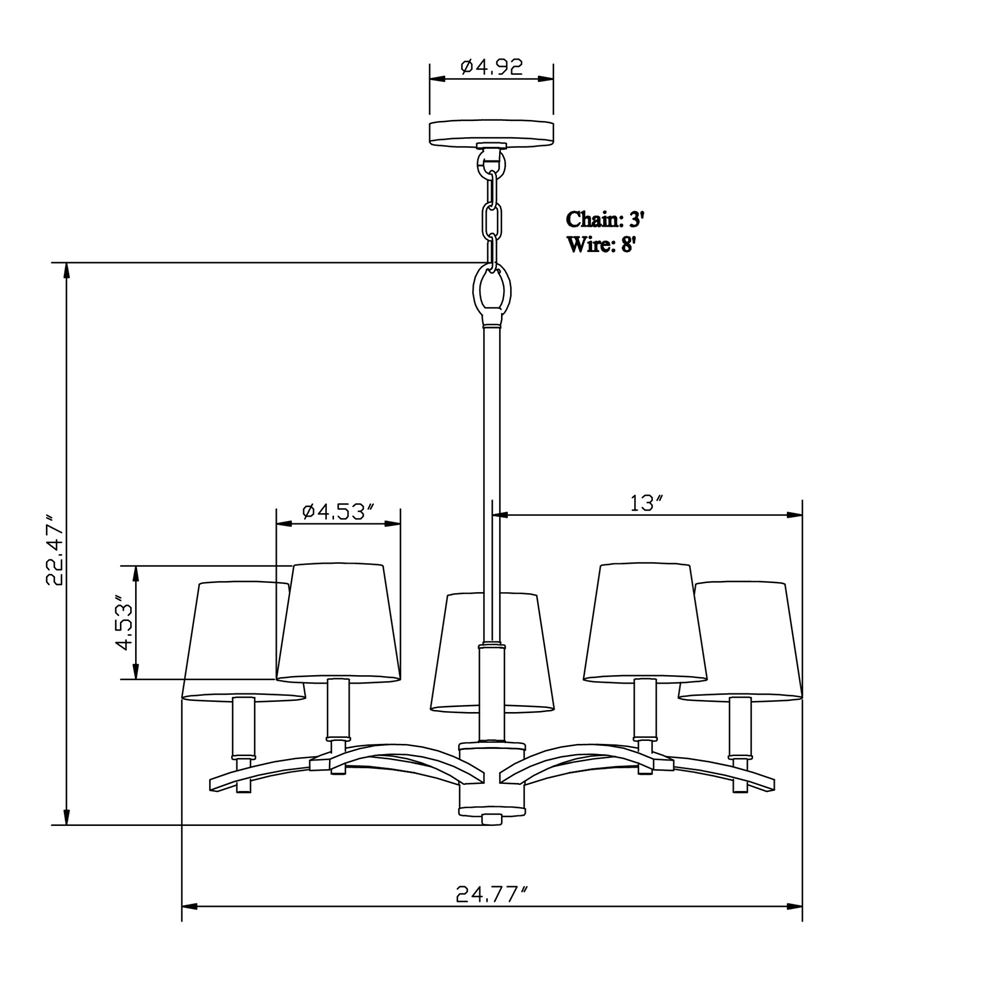 This 5-LT Chandelier from Forte has a finish of Chrome and fits in well with any Transitional style decor.