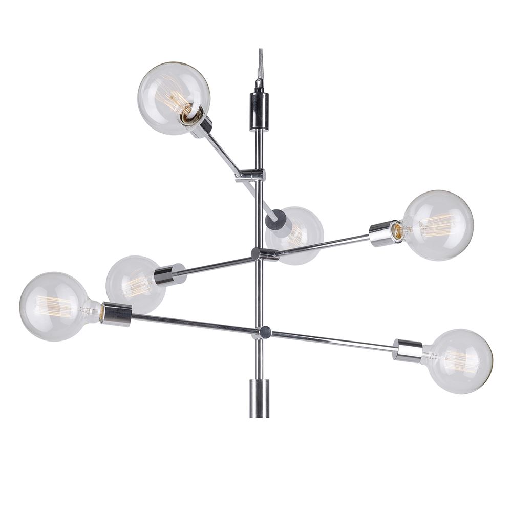 The Baton chrome finish steel contemporary chandelier features arms that rotate to a horizontal or vertical position. This series is available in either gold or chrome finish and is suitable for dining rooms or entries. Add an Edison style bulb for a more transitional look or an 'G' type LED for a contemporary feel. This 6-light chandelier measures 24 in. L x 24 in. W x 25.25 in. H.
