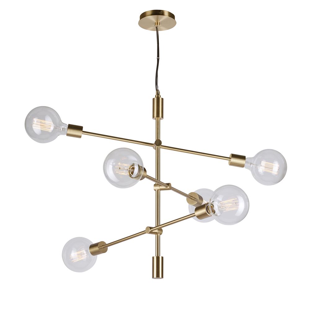 The Baton gold finish steel contemporary chandelier features arms that rotate to a horizontal vertical position. This series is available in either chrome or gold finish and is suitable for dining rooms or entries. Add an Edison style bulb for a more transitional look or an 'G' type LED for a contemporary feel. This 6-light chandelier measures 24 in. L x 24 in. W x 25.25 in. H.