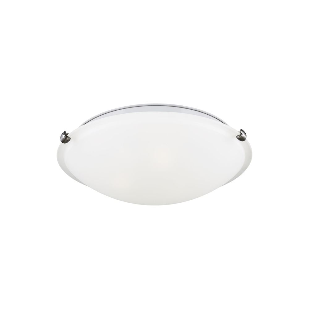 The clip ceiling flush mount fixtures by Sea Gull Lighting provide a clean, contemporary look popular in commercial and residential settings. Offered in two-light and three-light options, the Satin Etched glass is held securely in place with Three Brushed Nickel clips – slide the spring-tension clip out for easy glass cleaning and bulb changing. Available in incandescent lamping, ENERGY STAR-qualified LED lamping, and integrated LED.