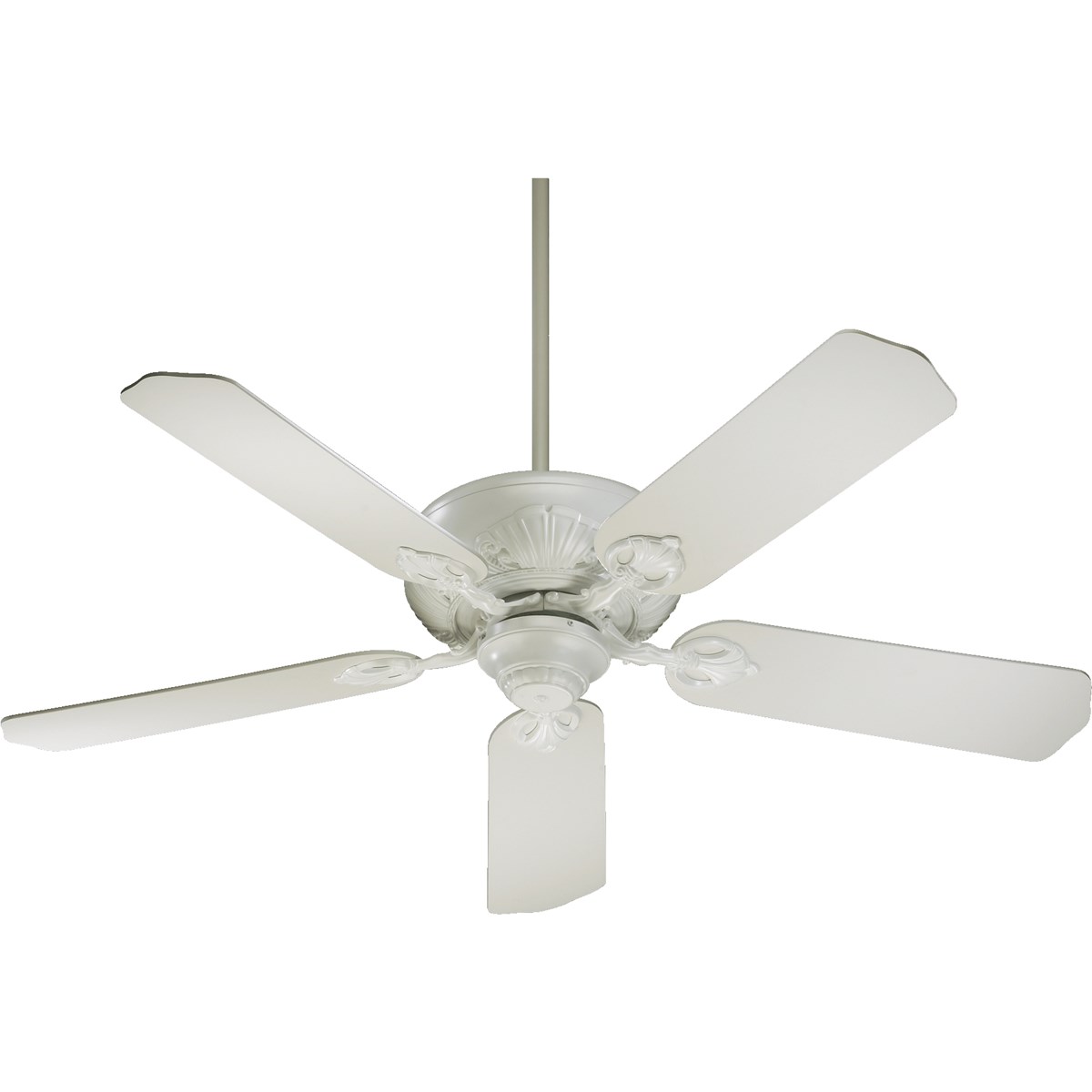 This 52" 5-Blade Chateaux Ceiling Fan from Quorum has a finish of Studio White and fits in well with any Transitional style decor.
