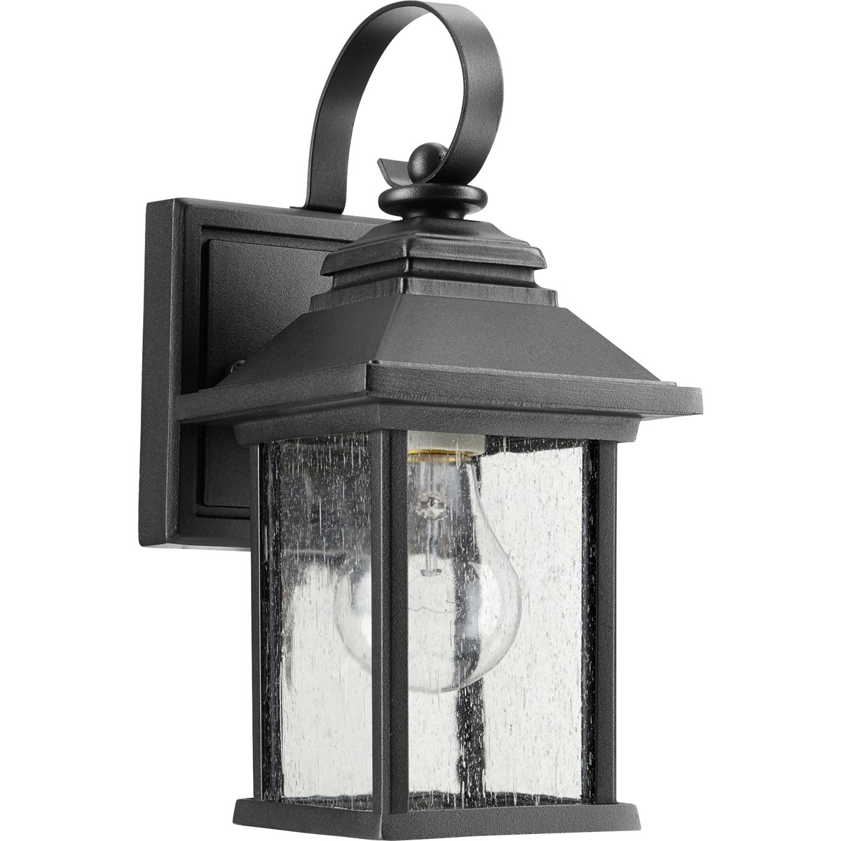 This Pearson 5" Outdoor Wall Lantern from Quorum has a finish of Noir and fits in well with any Transitional style decor.