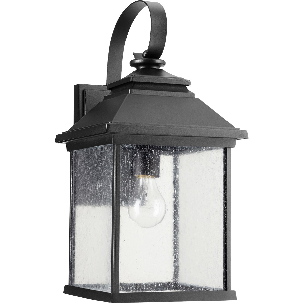 This Pearson 9" Outdoor Wall Lantern from Quorum has a finish of Noir and fits in well with any Transitional style decor.