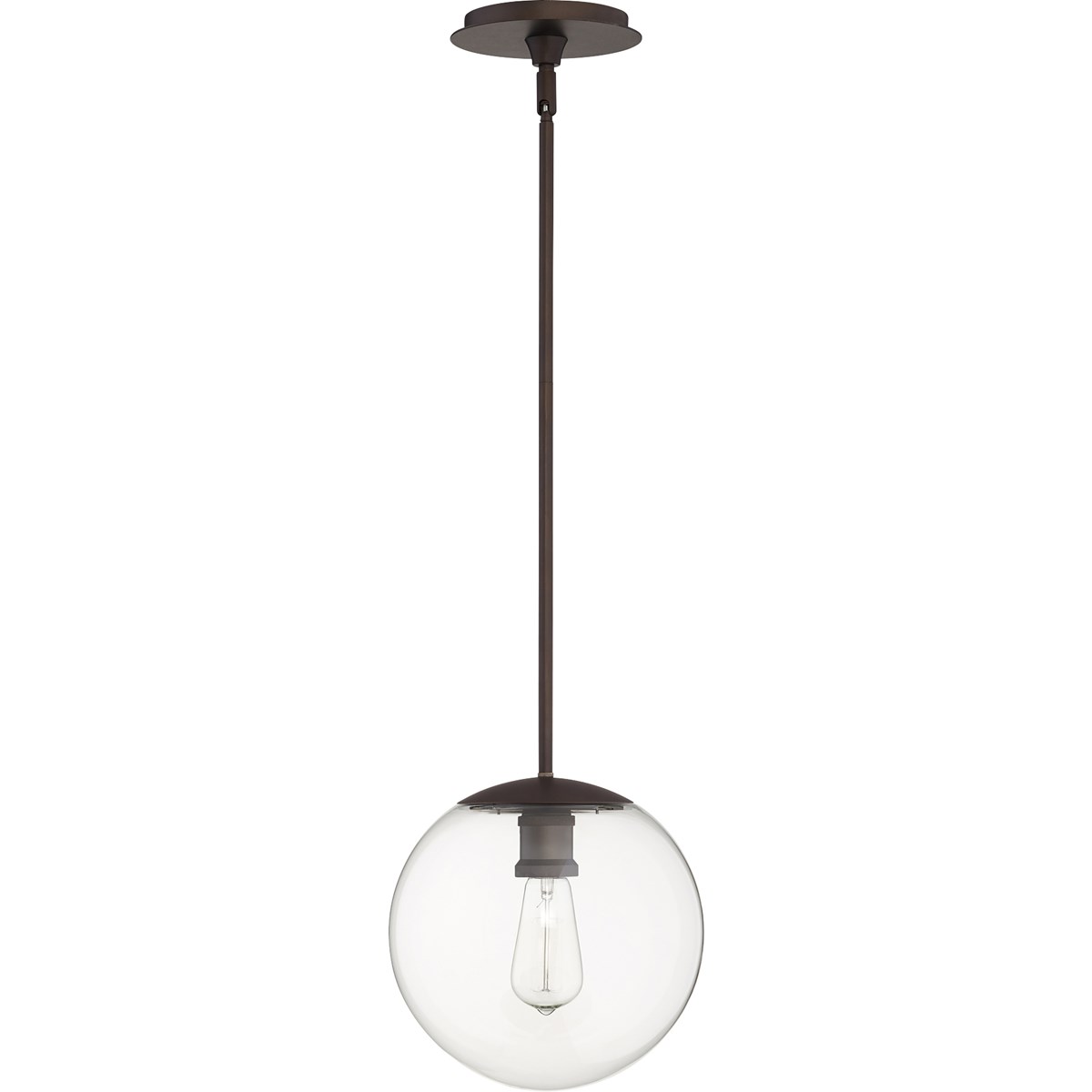 This 10" Clear Globe Pendant from Quorum has a finish of Oiled Bronze and fits in well with any Transitional style decor.