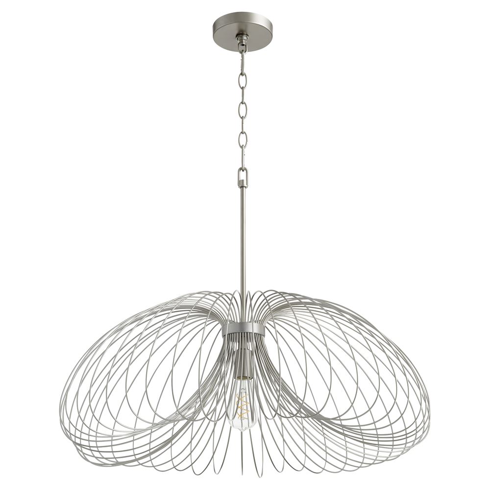 This 30" 1-LT Loopy Loop Pendant from Quorum has a finish of Brushed Silver and fits in well with any Contemporary style decor.