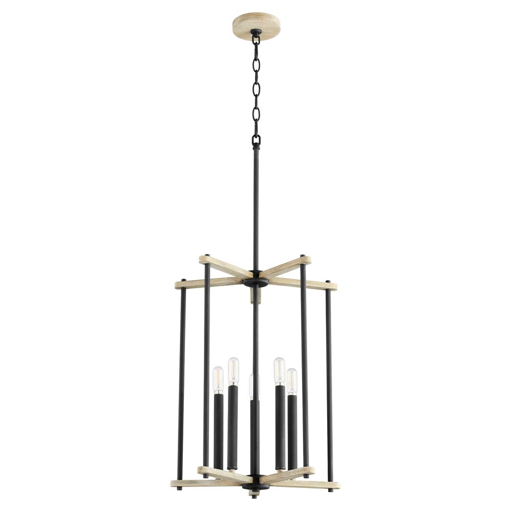 This 5-LT Entry & Foyer Light from Quorum has a finish of Noir w/Weathered Oak Finish and fits in well with any Transitional style decor.
