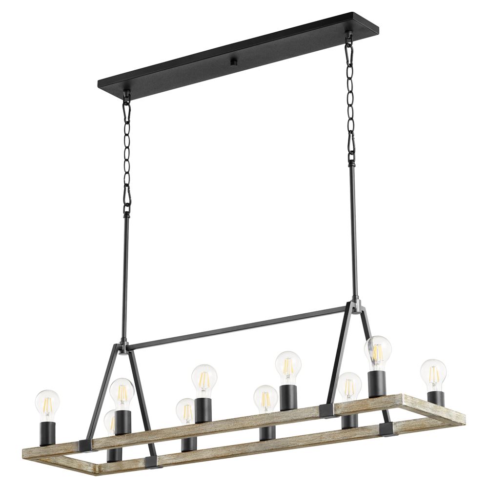 This 10-LT Linear Chandelier from Quorum has a finish of Noir w/Weathered Oak Finish and fits in well with any Transitional style decor.
