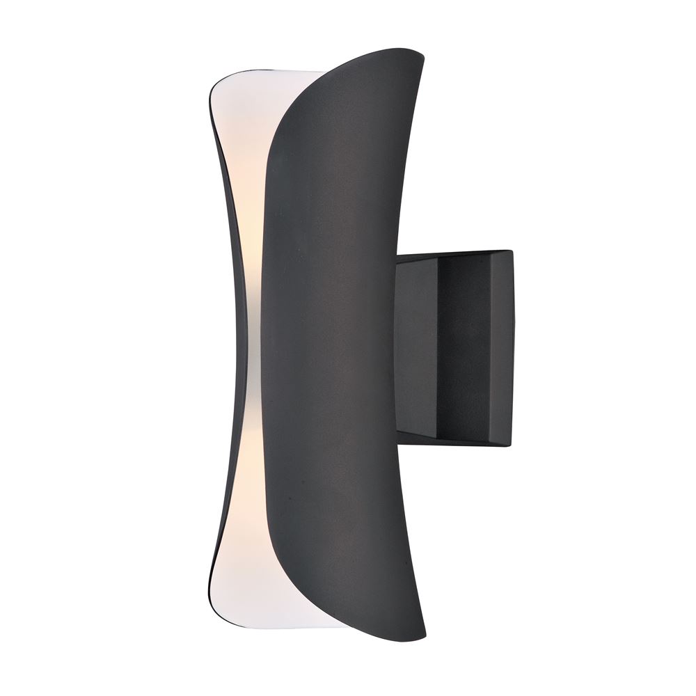 Softly rolled aluminum does not quite meet at the center, leaving an opening to allow light to escape from its top and bottom, visible all along its center. The scroll series comes in our Architectural Bonze finish with a white interior to better reflect light and create an interesting light pattern on the wall. Suitable for both indoor and outdoor applications.