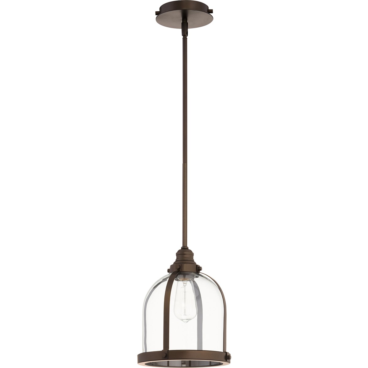This Banded Dome Pendant from Quorum has a finish of Oiled Bronze and fits in well with any Transitional style decor.