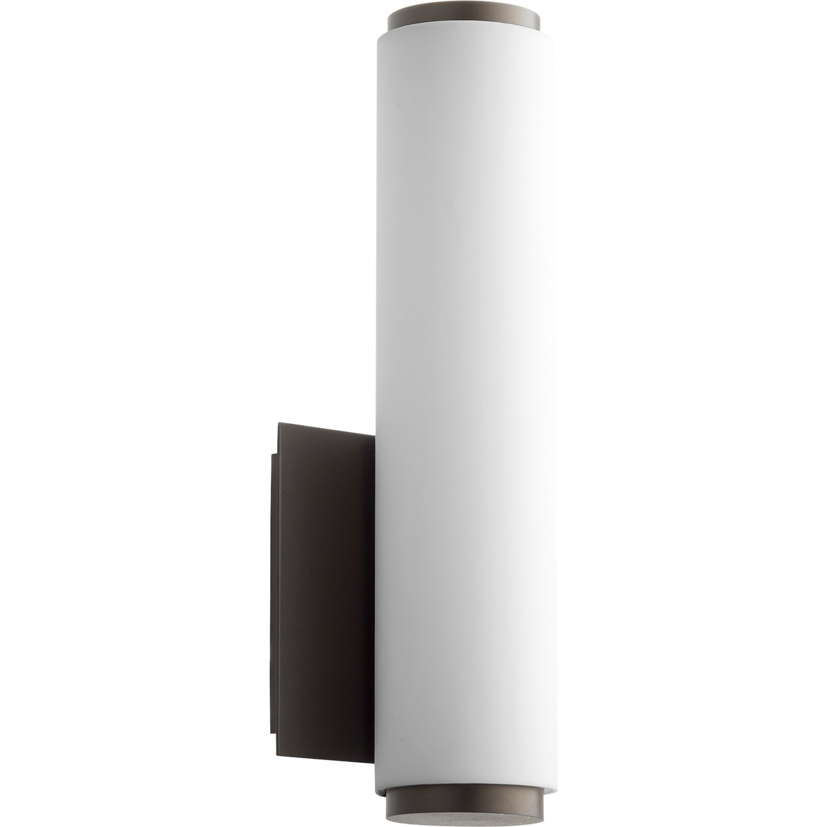 This LED 13" Wall Mount from Quorum has a finish of Oiled Bronze W/ Matte White Acrylic and fits in well with any Transitional style decor.